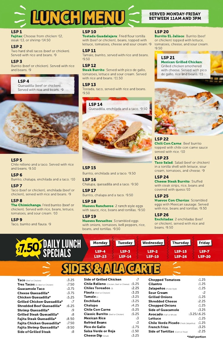 Welcome to El Jalisco Apalachee Parkway, a gem nestled at 719 Apalachee Pkwy in Tallahassee, FL. This vibrant restaurant offers an inviting menu that captures the heart of authentic Mexican cuisine.